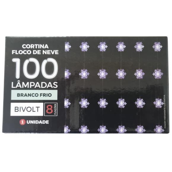 PISCA CORTINA 100 LEDS FT 8F 2.7M BR FLOCO DE NEVE BIVOLT